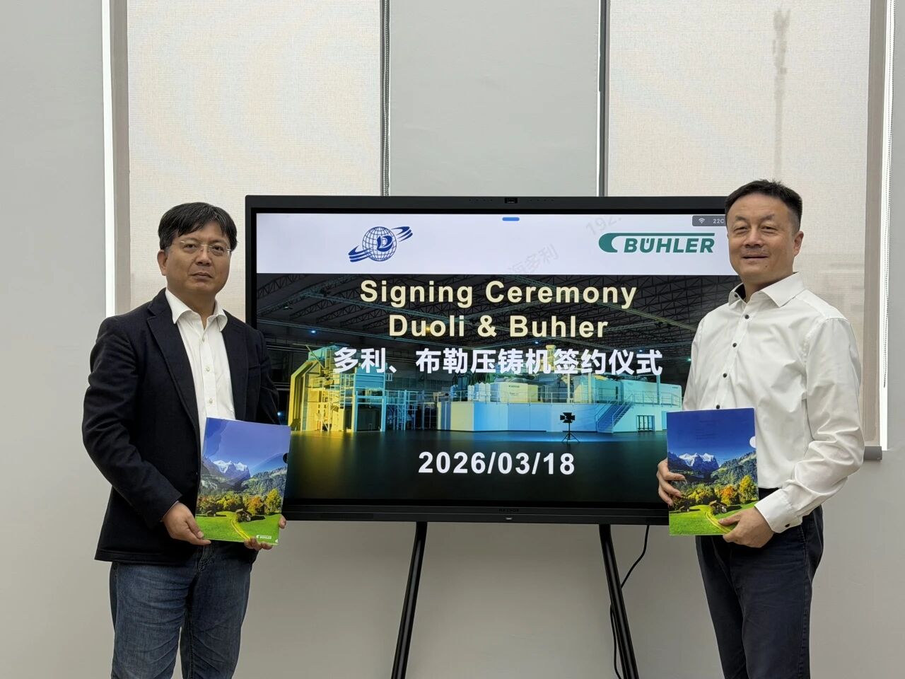 全球压铸解决方案服务商布勒集团在在2026全国压铸年会上正式宣布:中国大型一体化压铸领域领军企业多利科技已与其完成新订单签约,将再度引进包含 Carat 920、Carat 720 机型在内的多套大型一体化压铸岛(即9200T、7200T超大型压铸岛)。